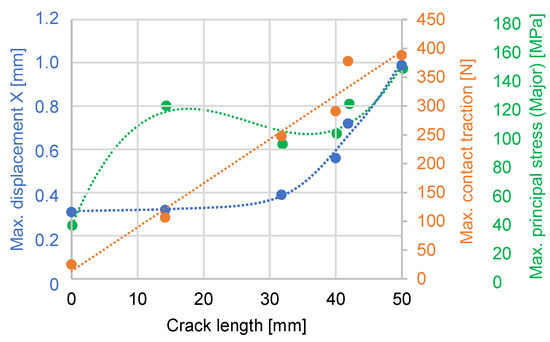 Summary of the FEA results according to the crack length.