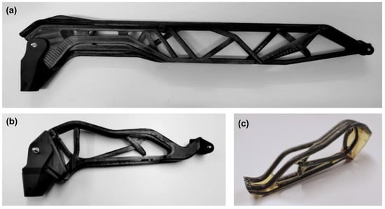 - The numerical tool, which combines two methods of structural optimization, is well suited for the design of additively manufactured polymer structures with variable–axial cF reinforcement.