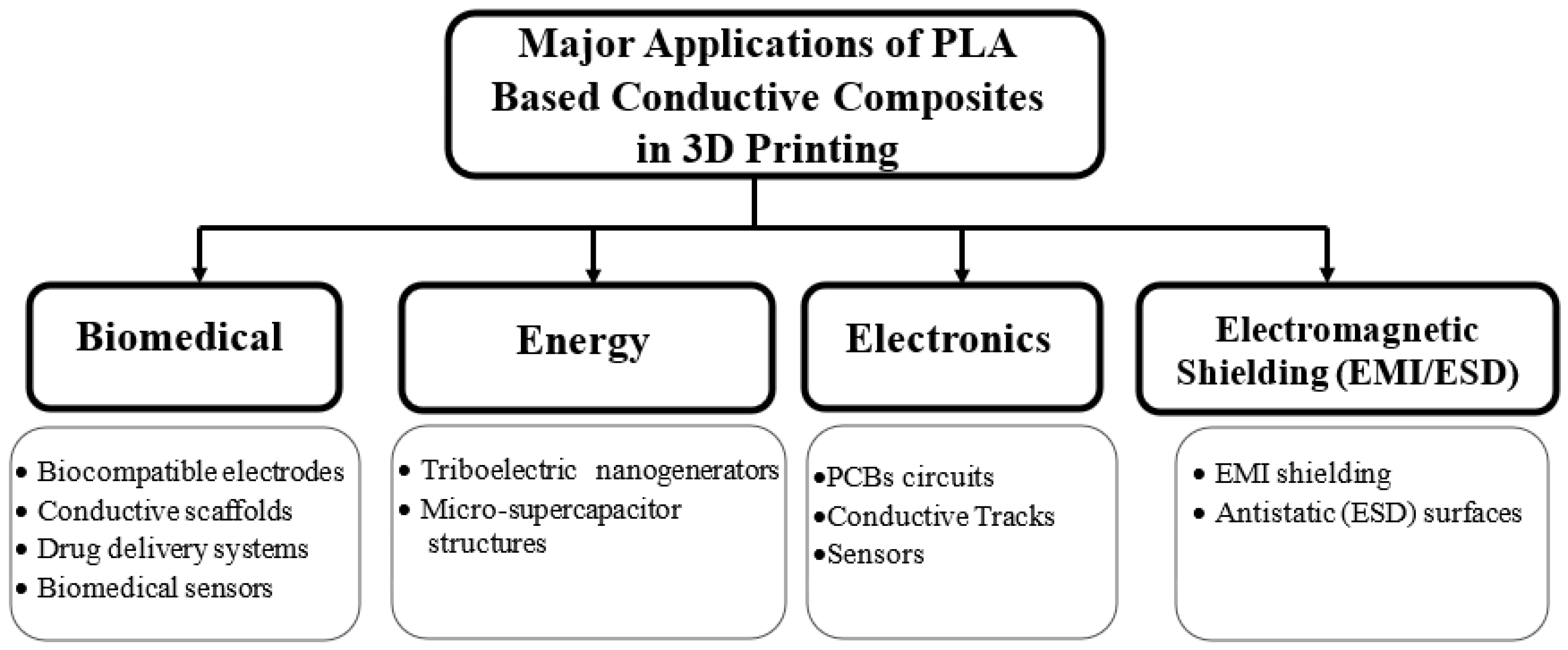 - Zhou, X.; Wu, L.; Wang, J. Recent developments in conductive polymer composites for fused deposition modeling. Compos. Part A Appl. Sci. Manuf. 2023, 174, 107739. [Google Scholar] [CrossRef]