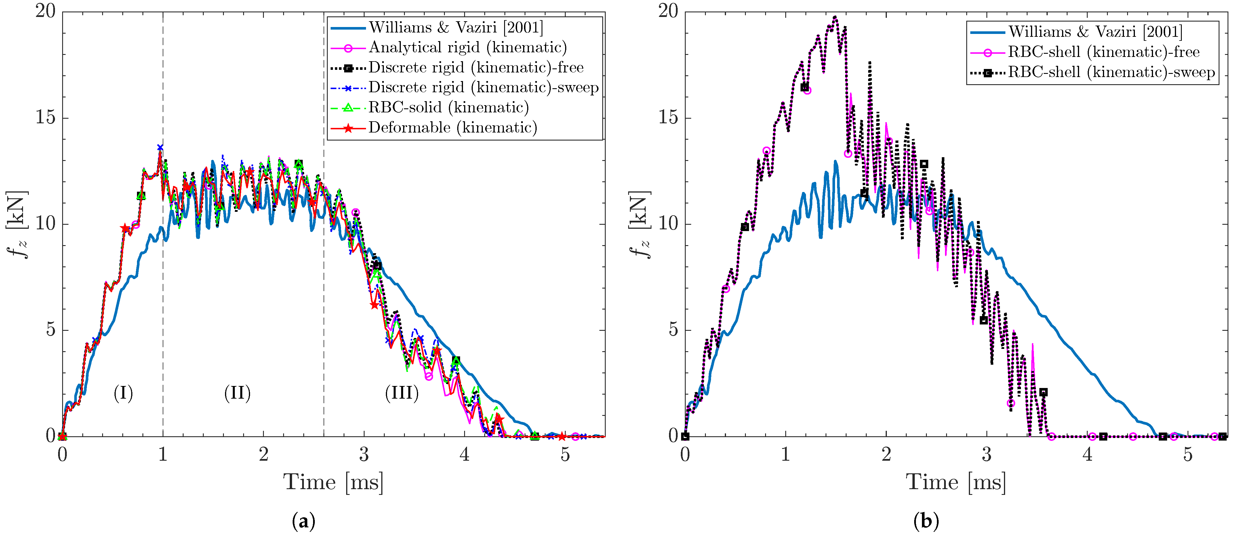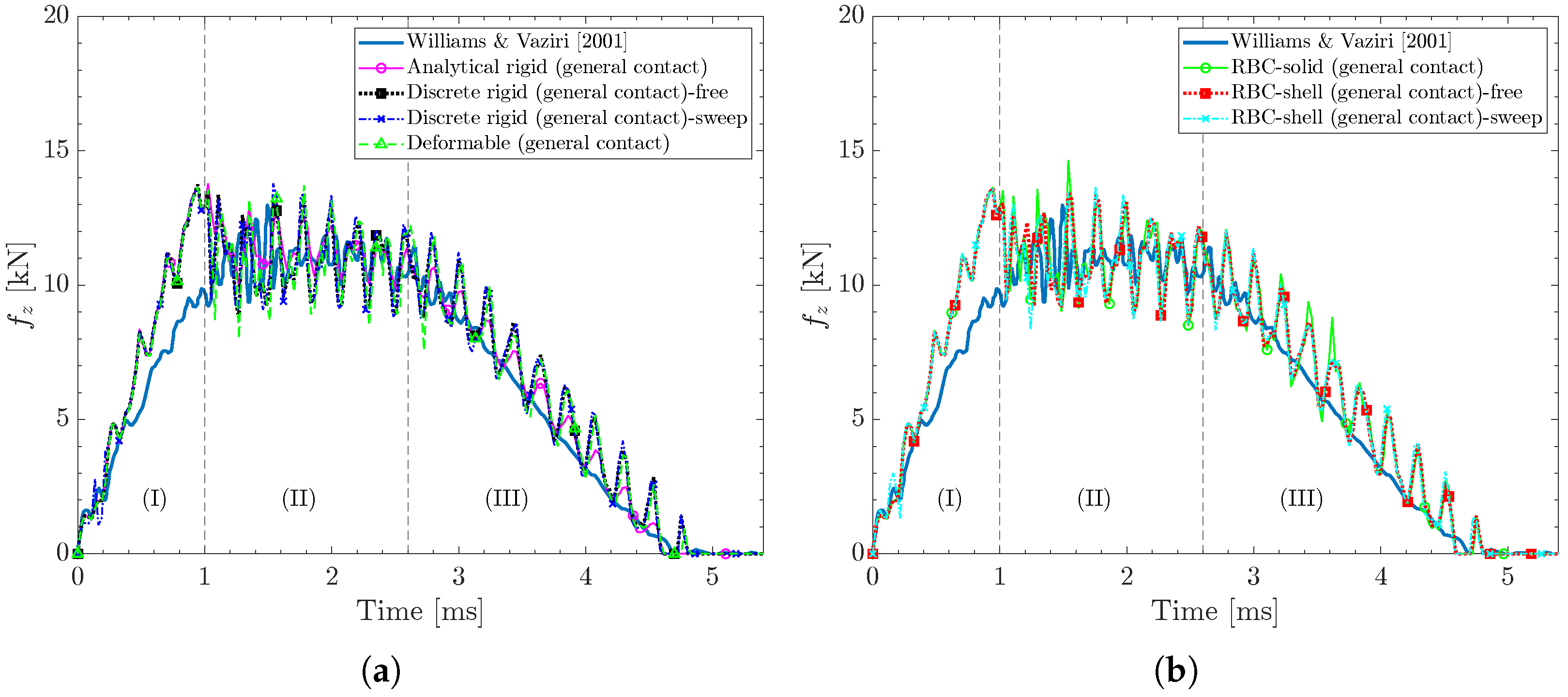 A summary comparison of these projectiles’ key characteristics is provided in Table 3 The table highlights the variation geometry definition, element type, mesh control, deformability, and level of user control over modeling flexibility. While some of these projectile modeling techniques share similar features, such as element type, they differ in terms of modeling complexity and the accuracy with which they capture contact interactions. In this paper, all four projectiles are systematically compared to examine their effect on the contact force response and compatibility with different contact algorithms.