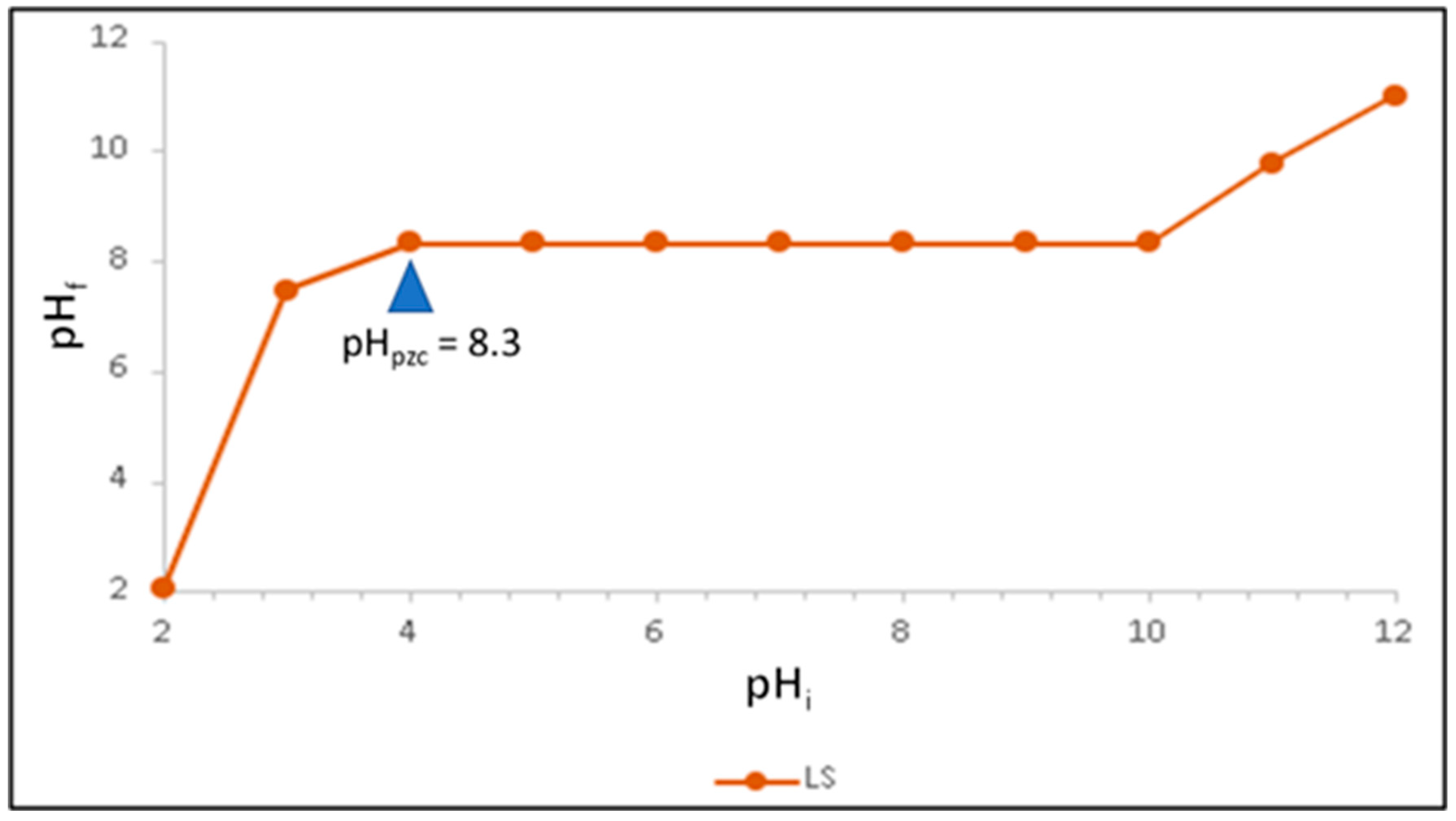 The observed optimal adsorption performance at pH ≈ 8 aligns closely with the limestone’s point of zero charge (pHpzc = 8.3) (