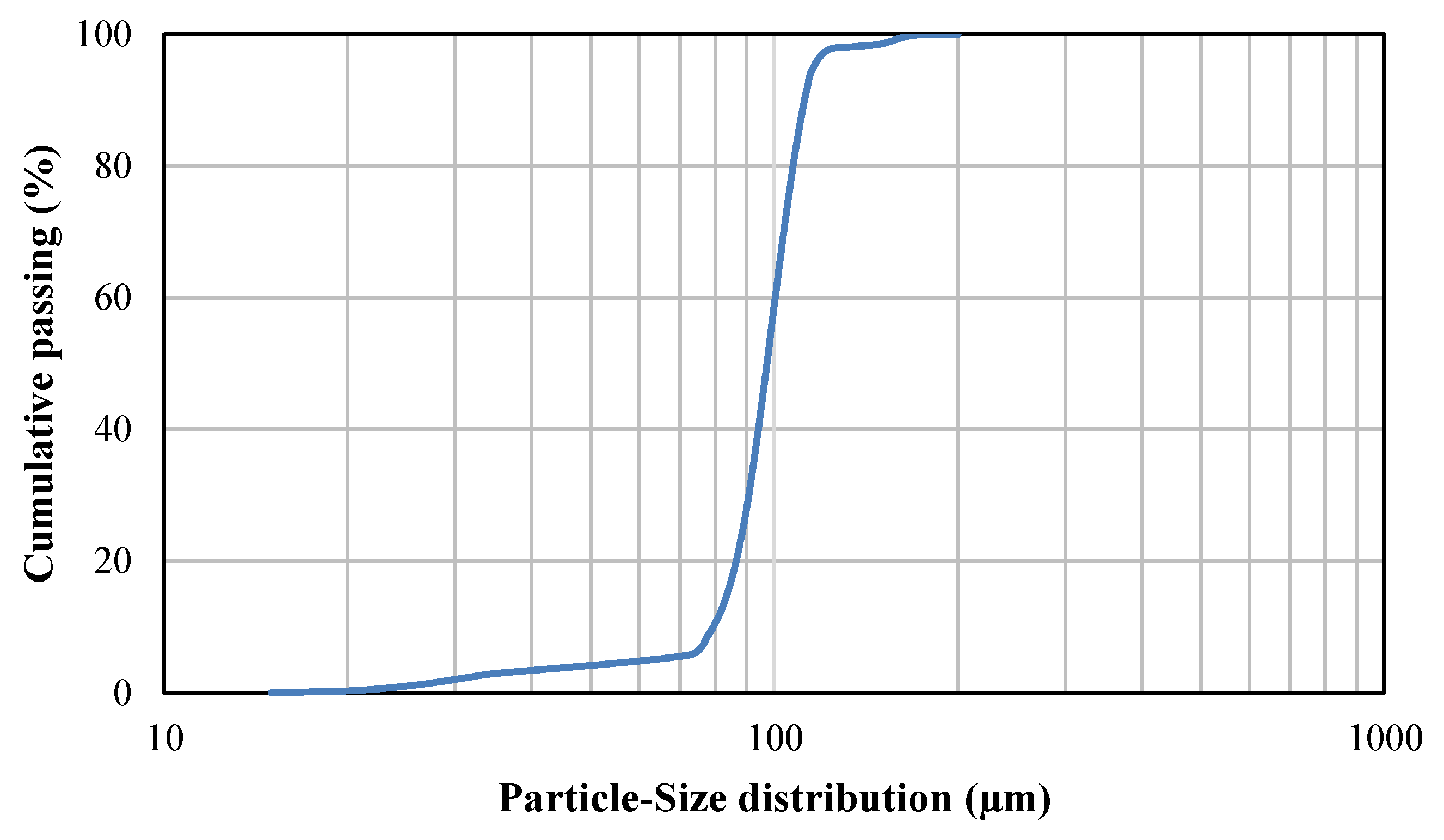 Figure 1 shows the particle-size distribution of SQS used in this study. The particle size distribution analysis showed that the D50 and D90 values are 97 μm and 112 μm, respectively.