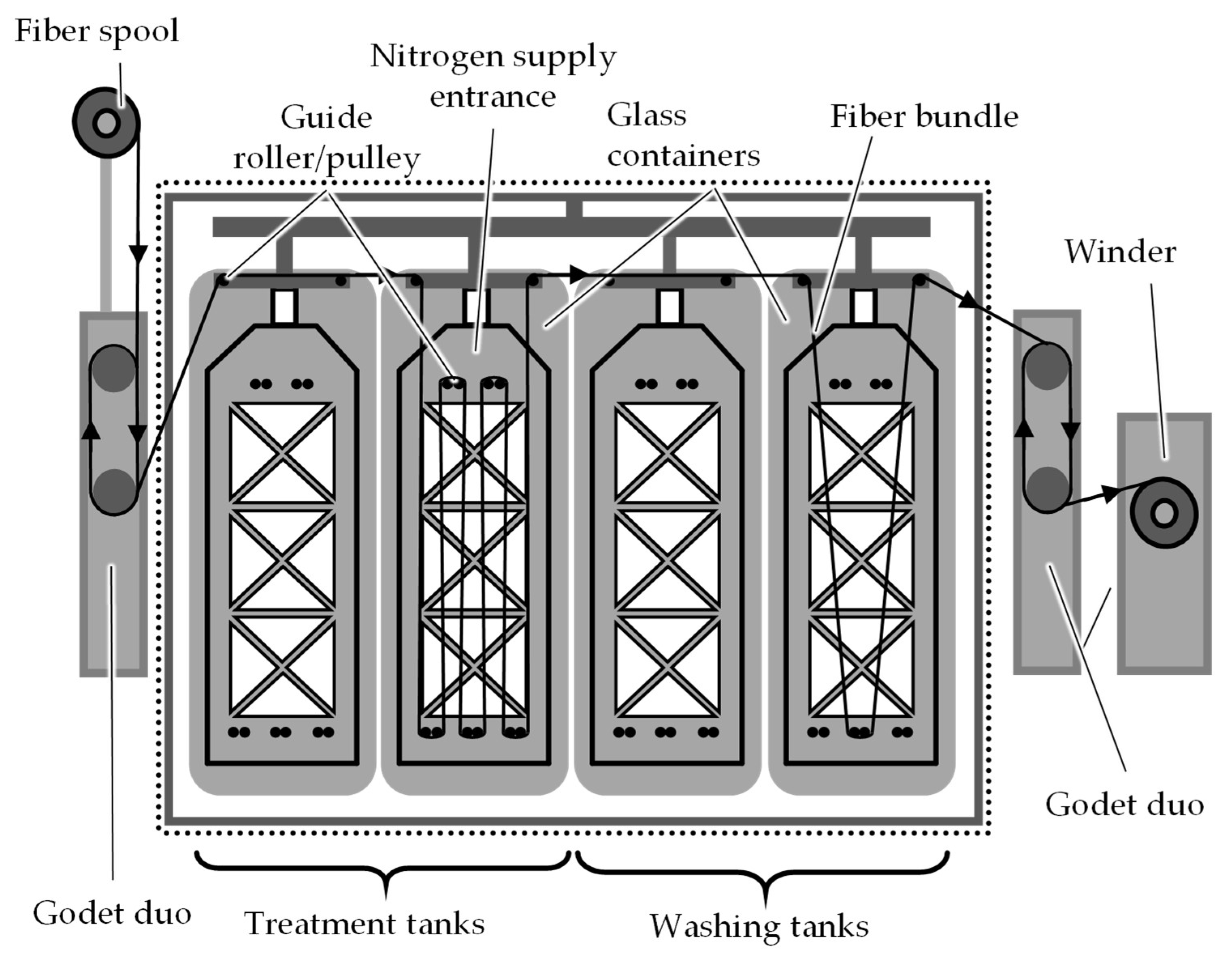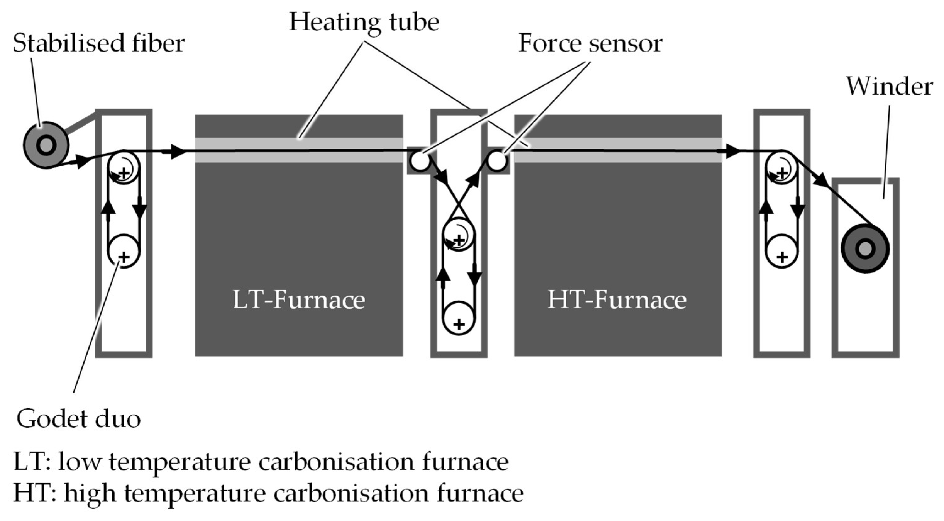 Post-Treatment: After carbonisation, surface treatment is carried out and sizing applied to enhance adhesion in composite materials, and to protect the fibres.