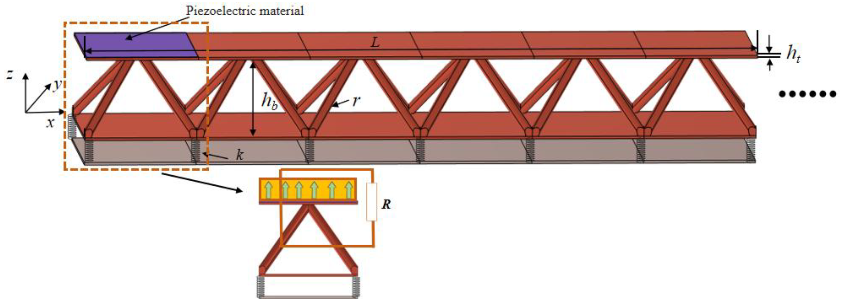 34], often involve complex fabrication processes or rely on multi-material compositions, which pose practical challenges for manufacturing and scalability. This highlights a critical and unmet need for simpler, more robust designs utilizing single-phase materials that leverage sophisticated geometric tailoring to achieve multifaceted performance. The integration of periodic elastic constraints with an optimized core design, such as pyramidal trusses, offers a novel pathway to unlock enhanced electromechanical coupling and finely tuned dynamic responses that could bridge this existing research gap.