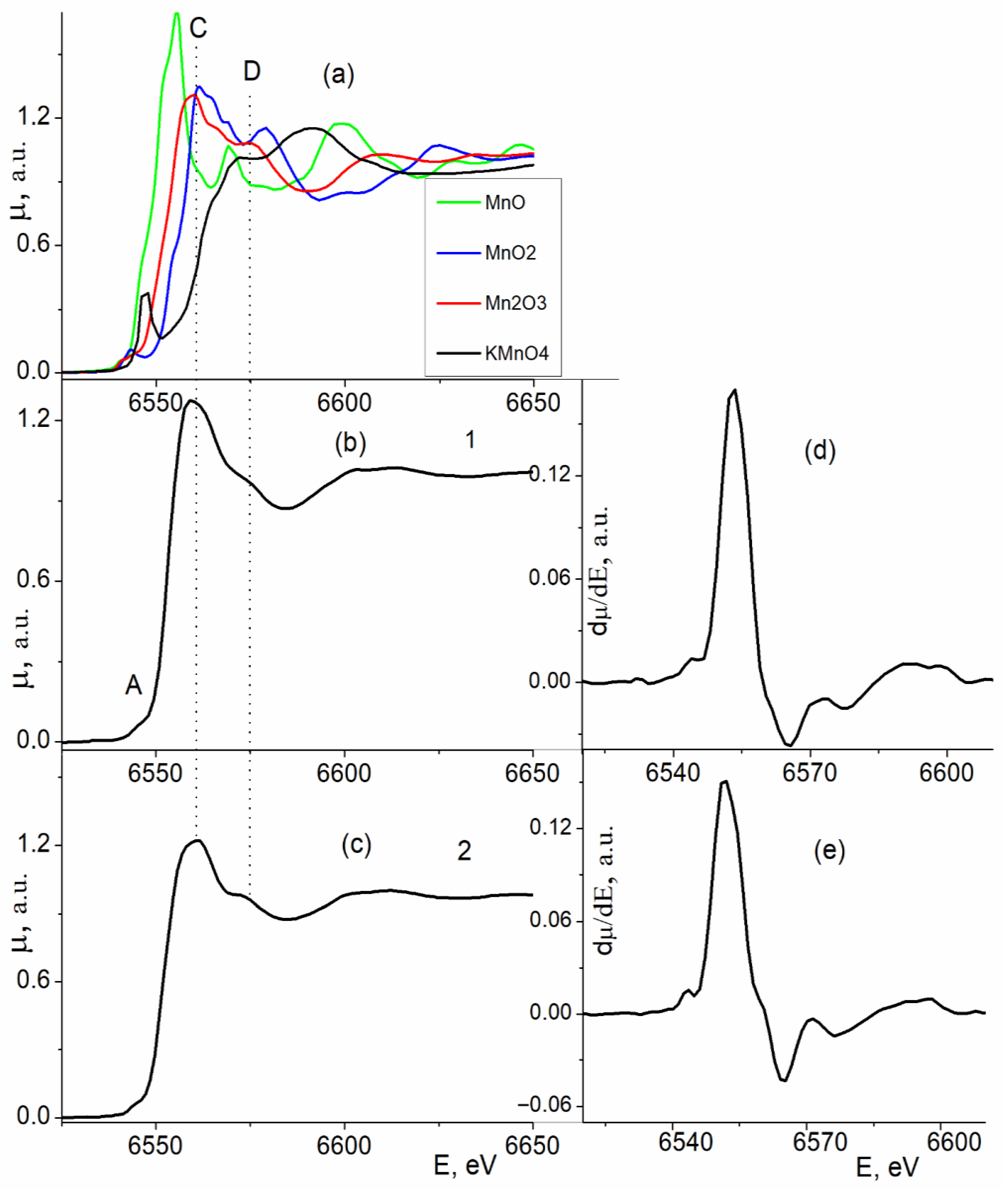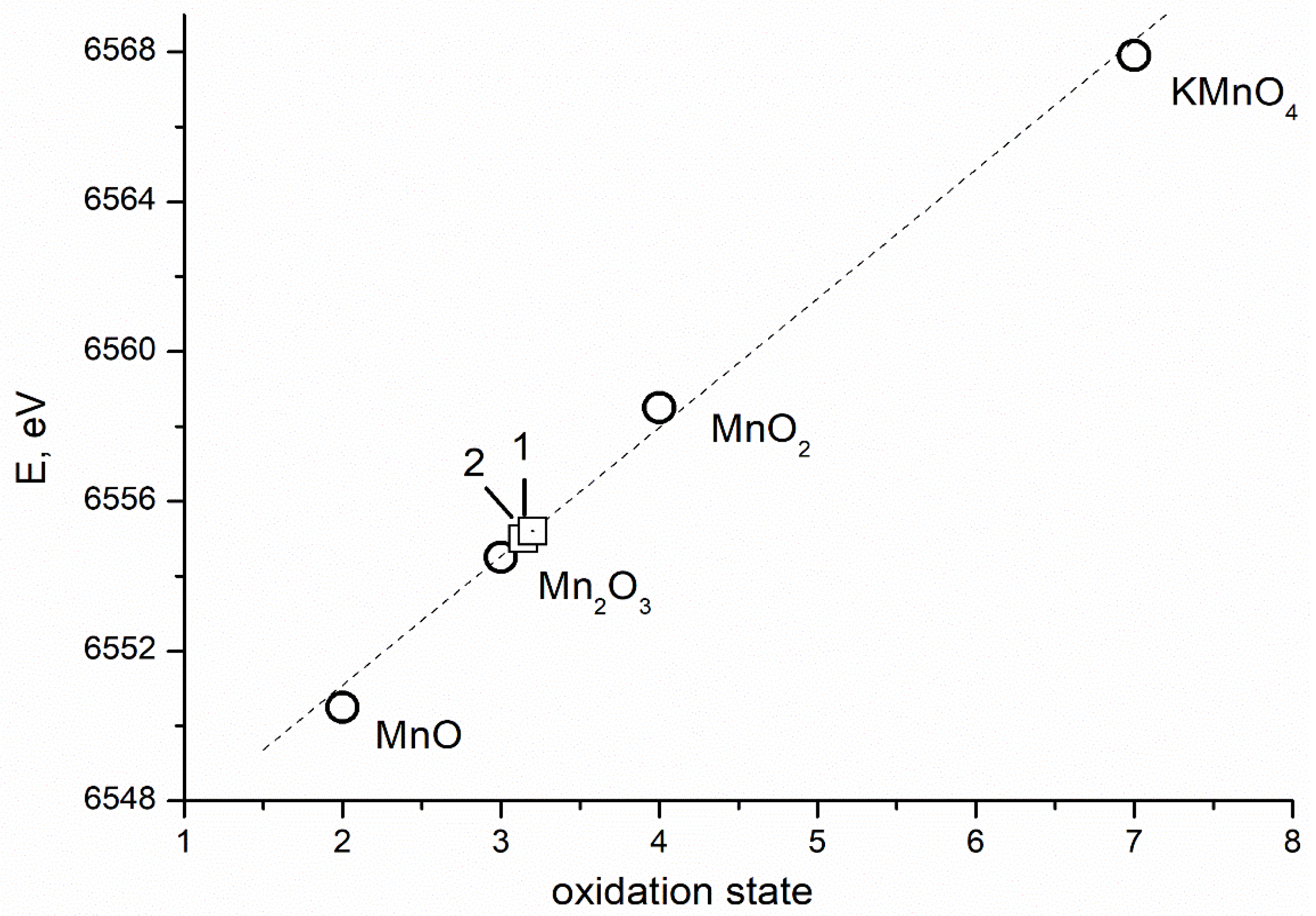 3.1. Results of the Study of the Electron and Atomic State of Manganese Atoms in Composite Materials
