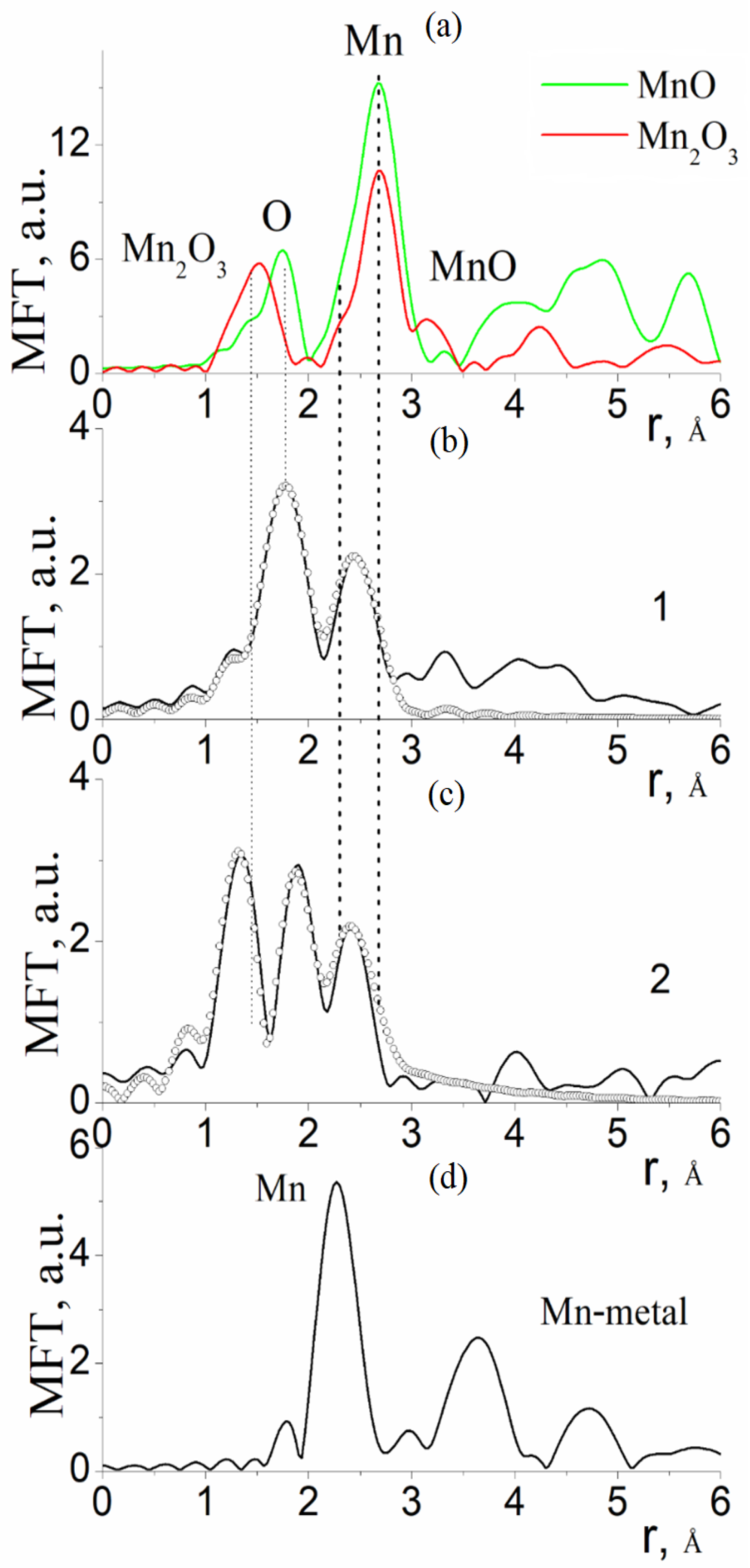 | 2 (Fe0.8Mn0.2) | 1.2 | 1.90 | 0.0040 | Mn-O | 2.1 |