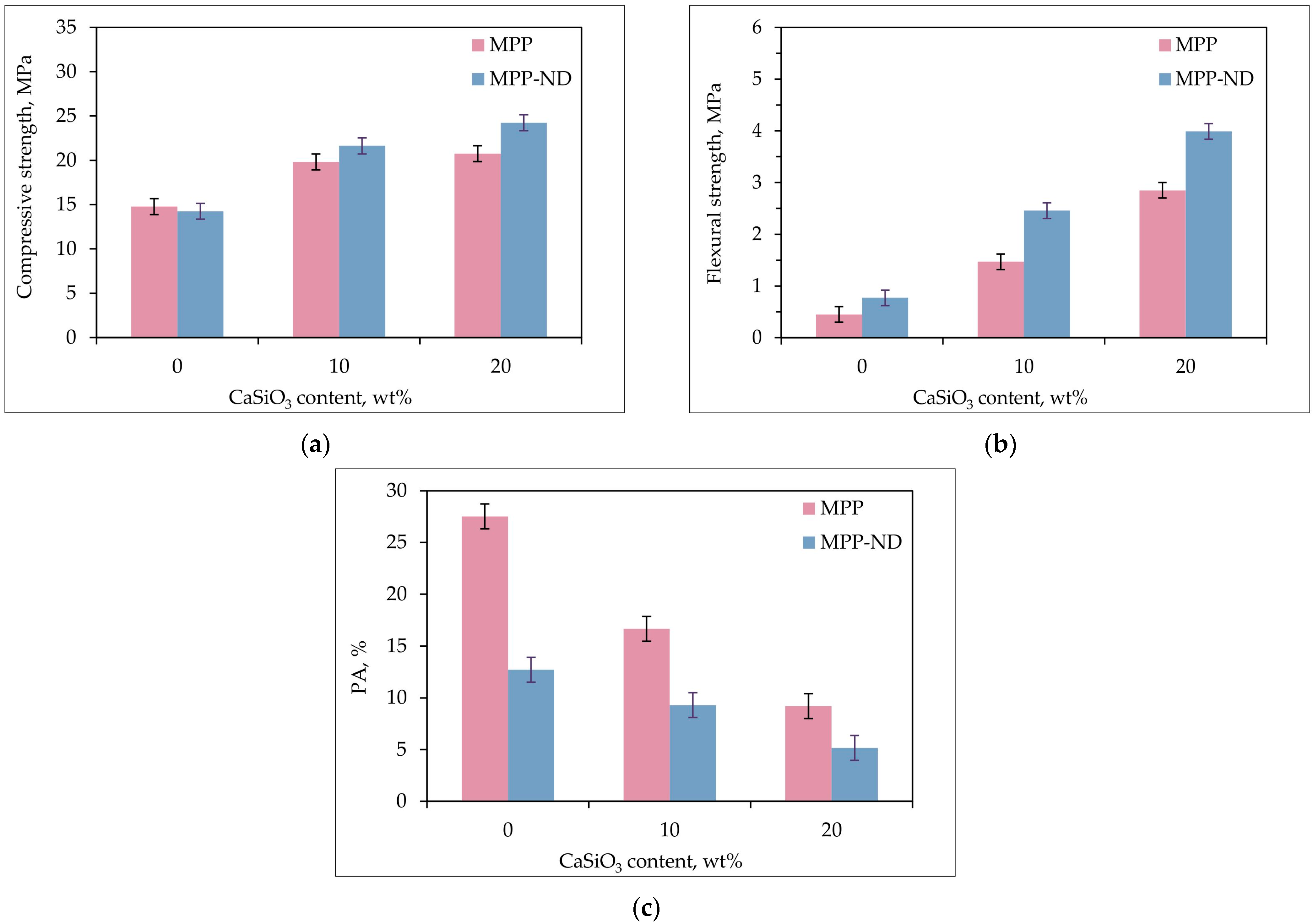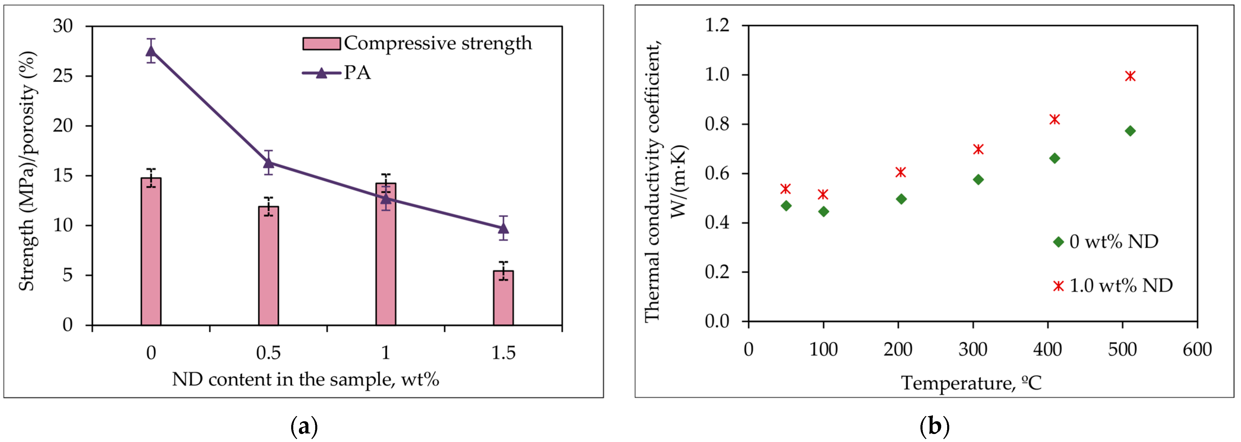 - The strength of the MPP-ND composite containing ≤1.0 wt% NDs is about 12–14 MPa;