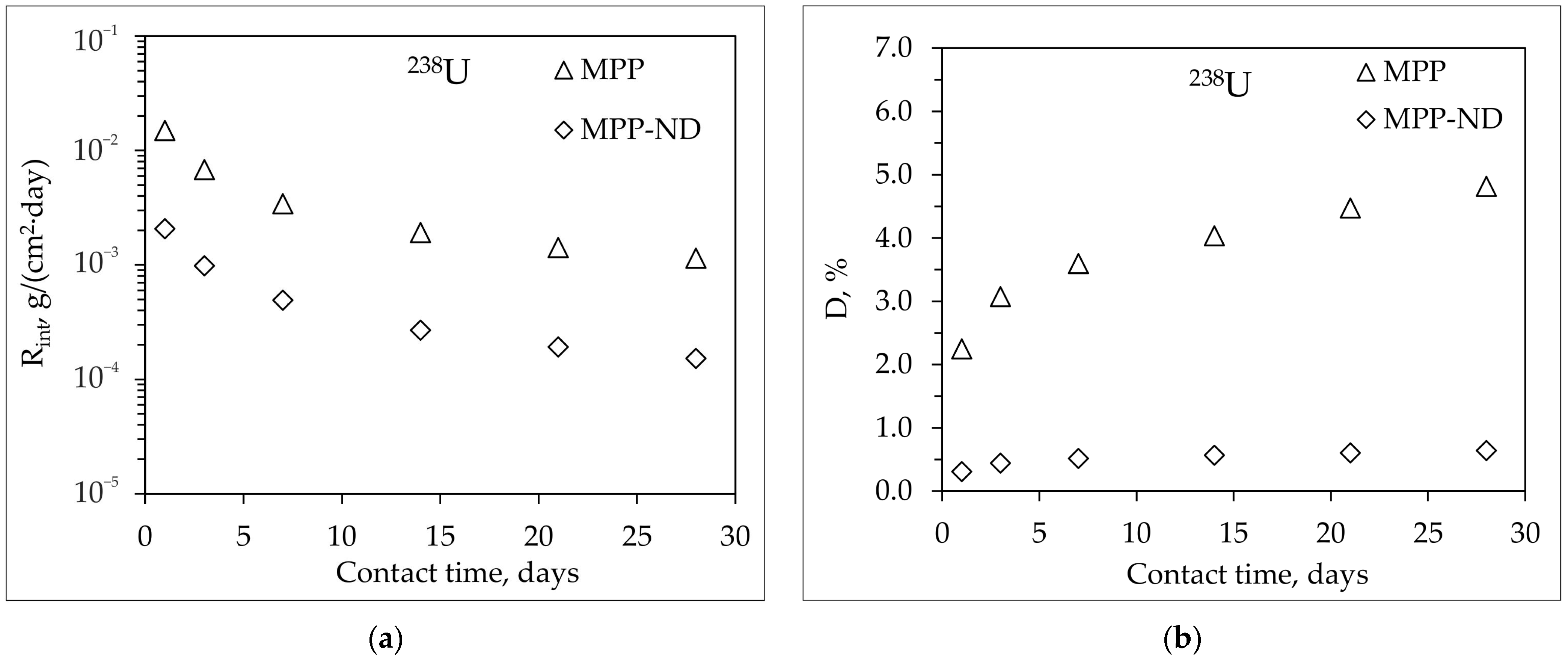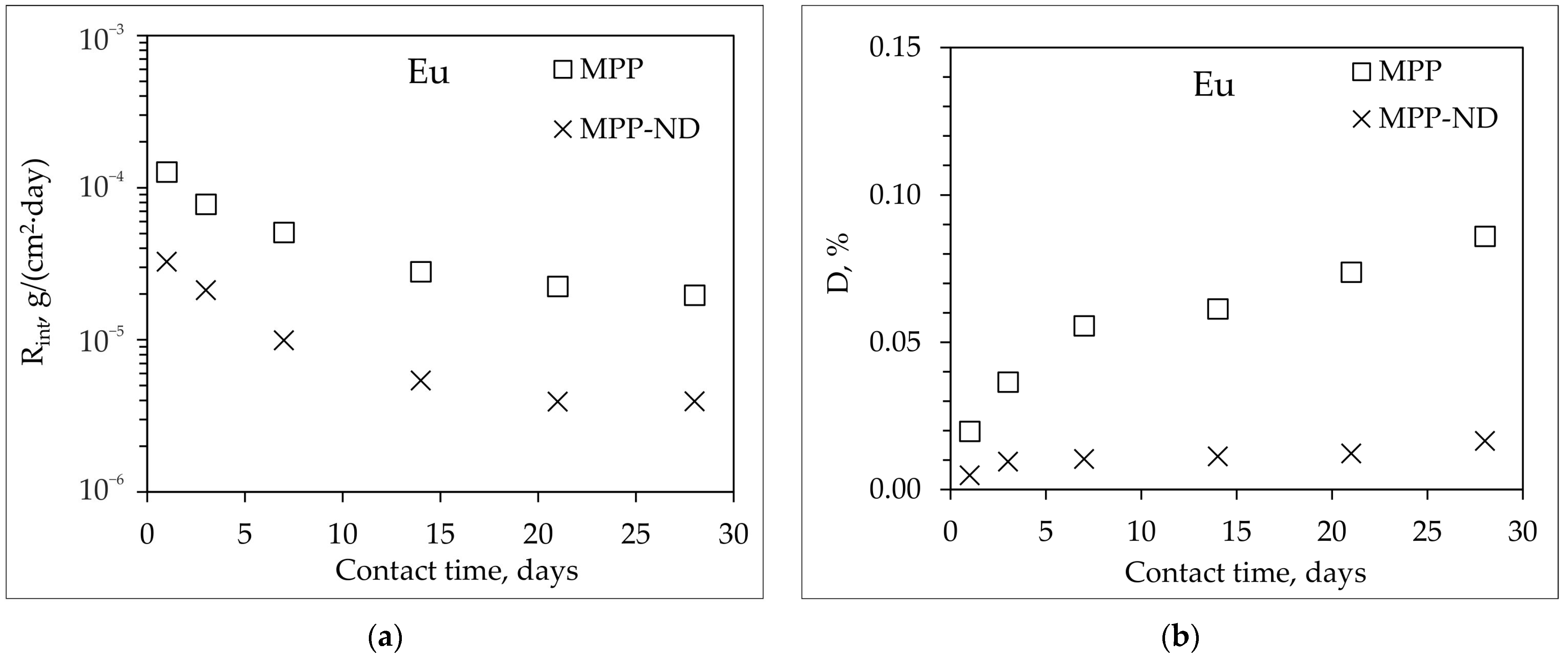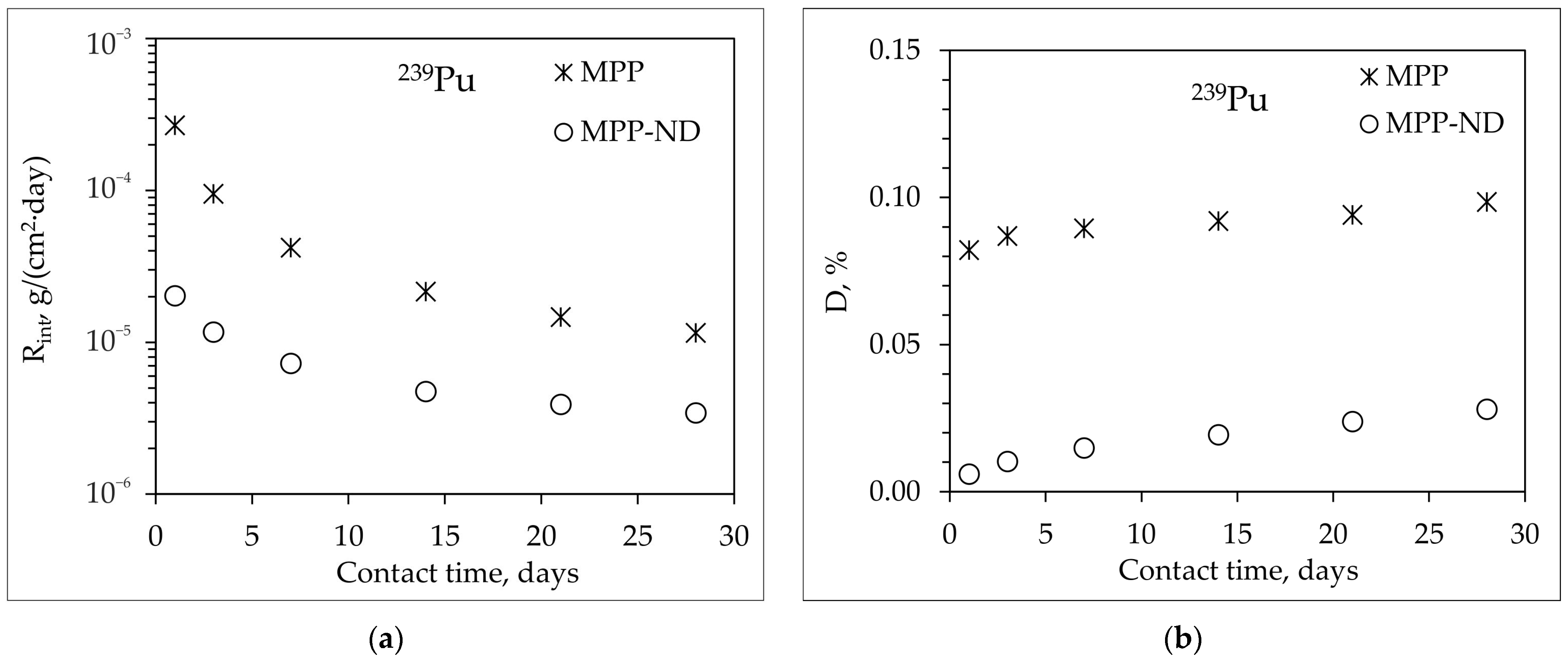 - The addition of 1 wt% NDs to the MPP-ND composite leads to a decrease in the rate and degree of leaching of 239Pu, 238U, and Eu of 3.5, 7.5 and 5 times, respectively.