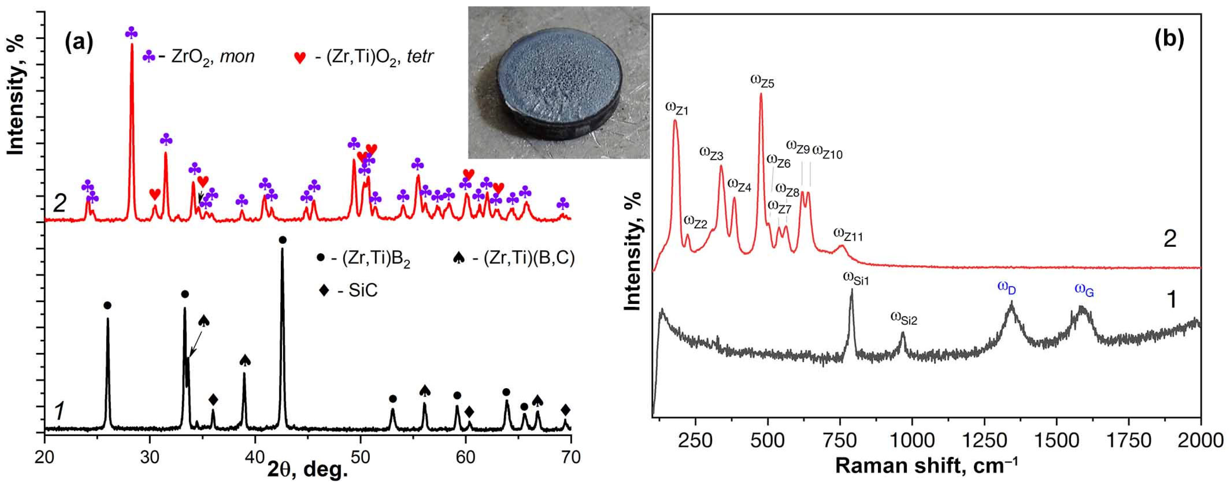 - Popov, O.; Dibrov, V.; Kuryliuk, V.; Vishnyakov, V. Reactive and Non-Reactive Hot Pressing of ZrB2-SiC-C UHTCs: Structure, Mechanical and Thermal Properties. J. Eur. Ceram. Soc. 2026, 46, 117839. [Google Scholar] [CrossRef]