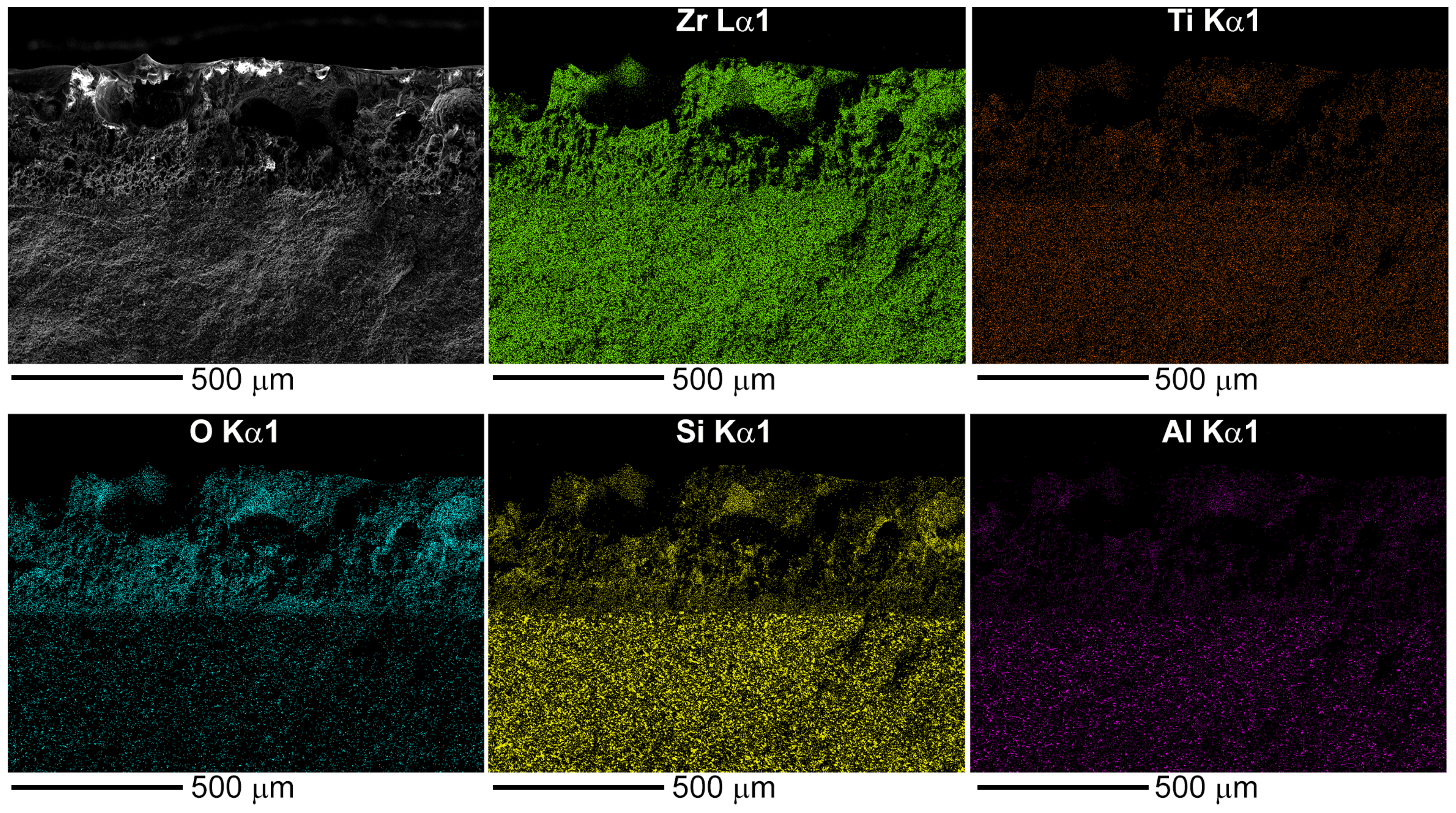 - Naderi, M.; Shahedi Asl, M.; Ghassemi Kakroudi, M.; Ahmadi, Z. Microstructure, Mechanical Properties and Oxidation Behavior of Reactive Hot-Pressed (Zr,Ti)B2-SiC-ZrC Composites. JOM 2025, 77, 1954–1968. [Google Scholar] [CrossRef]