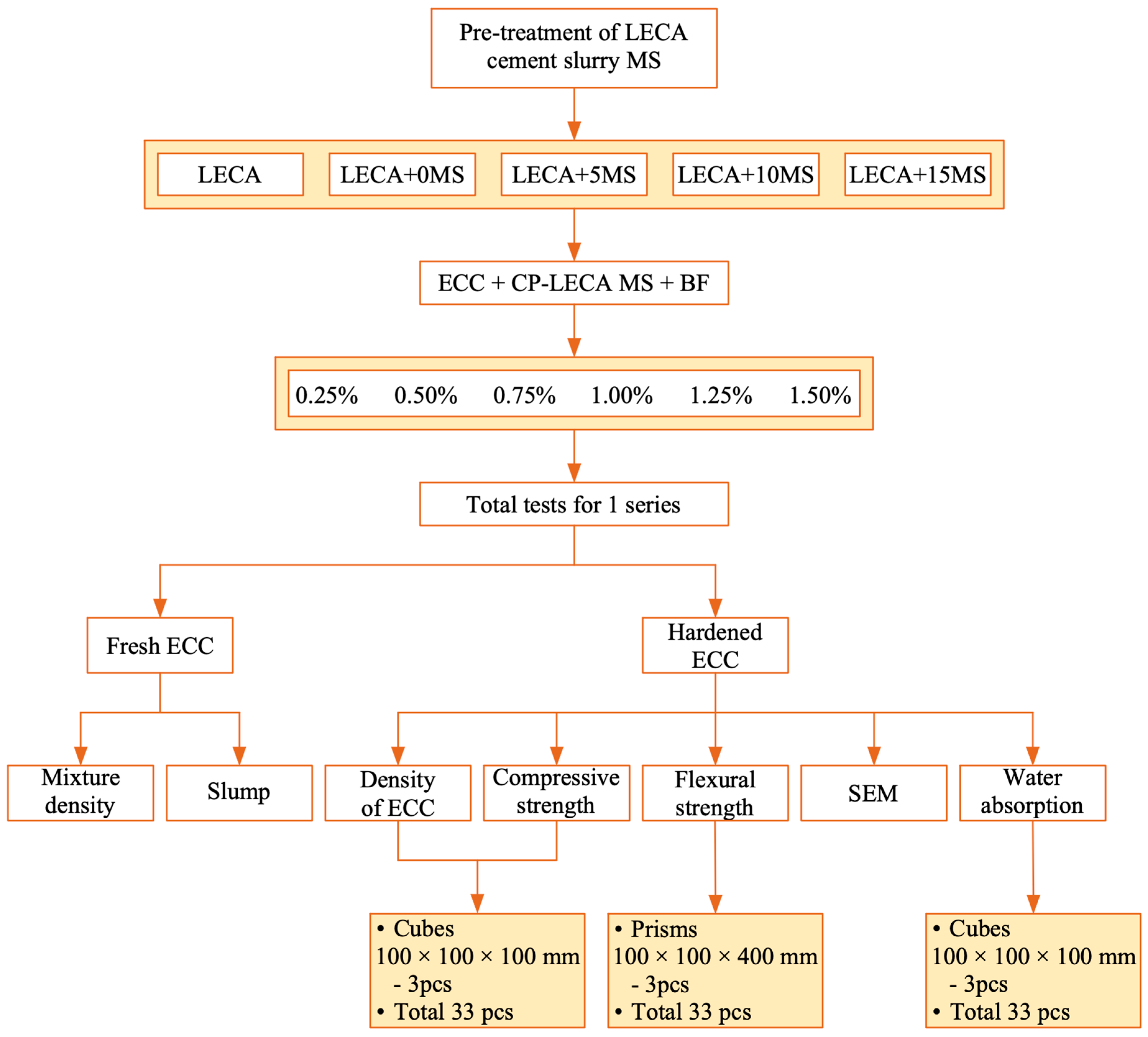 Developing compositions of fresh ECC using experimental samples of CP-LECA and dispersed fiber BF, as well as the production of 11 series of experimental ECC samples;