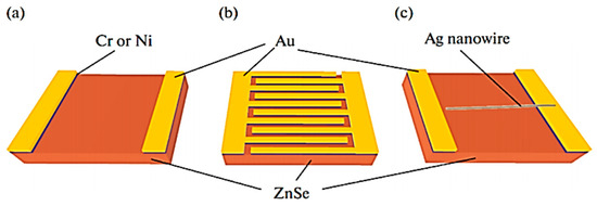 Schematic structures of ZnSe-based MSM UV photodetectors with conventional (a), interdigitated (b), and hybrid (c) contacts. Reprinted with permission from Ref. [78]. Copyright 2024, Pleiades Publishing.