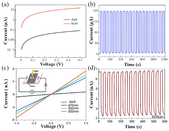 - Liu, Y.; Chen, P.; Dai, G.; Su, W.; Sun, Y.; Hou, J.; Zhang, N.; Zhao, G.; Fang, Y.; Dai, N. Single Bi2S3/Bi2S3-xOx nanowire photodetector with broadband response from ultraviolet to near-infrared range. Phys. E Low-Dimens. Syst. Nanostruct. 2020, 120, 114041. [Google Scholar] [CrossRef]