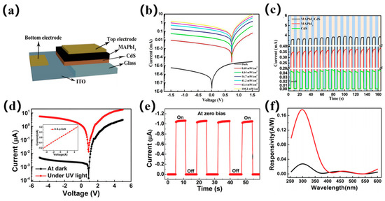 - Li, Z.; Li, H.; Jiang, K.; Ding, D.; Li, J.; Ma, C.; Jiang, S.; Wang, Y.; Anthopoulos, T.D.; Shi, Y. Self-Powered Perovskite/CdS Heterostructure Photodetectors. ACS Appl. Mater. Interfaces 2019, 11, 40204–40213. [Google Scholar] [CrossRef]