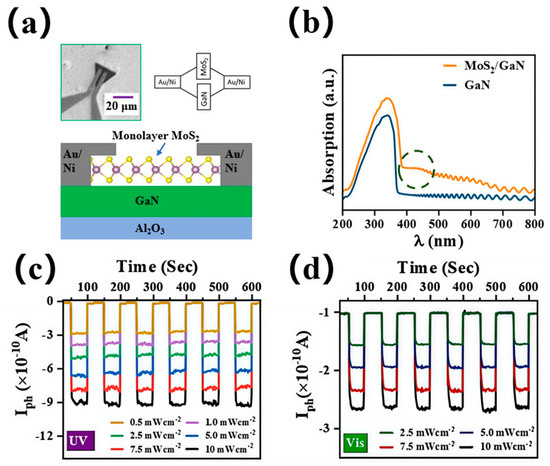 - Li, Z.; Luo, J.; Hu, S.; Liu, Q.; Yu, W.; Lu, Y.; Liu, X. Strain enhancement for a MoS2-on-GaN photodetector with an Al2O3 stress liner grown by atomic layer deposition. Photonics Res. 2020, 8, 799–805. [Google Scholar] [CrossRef]