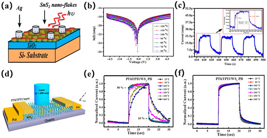 - Deng, S.; Chen, Y.; Li, Q.; Sun, J.; Lei, Z.; Hu, P.; Liu, Z.-H.; He, X.; Ma, R. Direct growth of SnS2 nanowall photoanode for high responsivity self-powered photodetectors. Nanoscale 2022, 14, 14097–14105. [Google Scholar] [CrossRef]