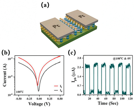 - Vashishtha, P.; Prajapat, P.; Sharma, A.; Goswami, P.; Walia, S.; Gupta, G. Self-driven and thermally resilient highly responsive nano-fenced MoS2 based photodetector for near-infrared optical signal. Mater. Res. Bull. 2023, 164, 112260. [Google Scholar] [CrossRef]