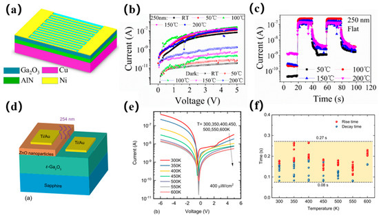 - Zhang, M.; Liu, Z.; Yang, L.; Yao, J.; Chen, J.; Zhang, J.; Wei, W.; Guo, Y.; Tang, W. High-temperature reliability of all-oxide self-powered deep UV photodetector based on ϵ-Ga2O3/ZnO heterojunction. J. Phys. D Appl. Phys. 2022, 55, 375106. [Google Scholar] [CrossRef]