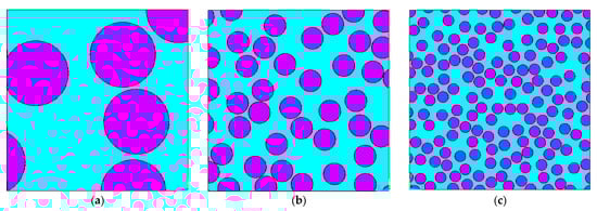 Considering these limitations, numerical methods offer the benefit of generating a broader range of parametric results compared to experimental and analytical approaches. Combined with the rapid progress in computational technology, which has enabled advancements in numerical methods [] and the need to represent complex microstructures in greater detail, numerical methods have become increasingly important and are applied in many studies of composite materials [,].