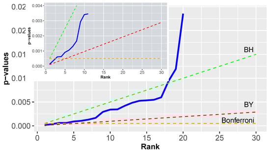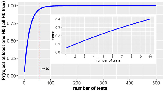 - Shaffer, J.P. Multiple hypothesis testing. Annu. Rev. Psychol. 1995, 46, 561–584. [Google Scholar] [CrossRef]