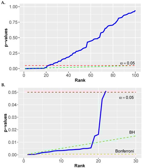 - Dudoit, S.; Van Der Laan, M.J. Multiple Testing Procedures With Applications to Genomics; Springer Science & Business Media: New York, NY, USA, 2007. [Google Scholar]