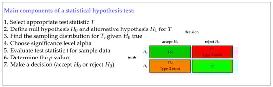 The first method that can be considered a hypothesis test is related back to John Arbuthnot in 1710 [2,3]. However, the modern form of statistical hypothesis testing originated from the combination of work from R. A. Fisher, Jerzy Neyman and Egon Pearson [4,5,6,7,8]. It can be considered one of the first statistical inference methods and it is till this day widely used [9]. Examples for applications can be found in all areas of science, including medicine, biology, business, marketing, finance, psychology and social sciences. Specific examples in biology include the identification of differentially expressed genes or pathways [10,11,12,13,14], in marketing it is used to identify the efficiency of marketing campaigns or the alteration of consumer behavior [15], in medicine it can be used to assess surgical procedures, treatments or the effectiveness of medications [16,17,18], in pharmacology to identify the effect of drugs [19] and in psychology it has been used to evaluate the effect of meditation [20].