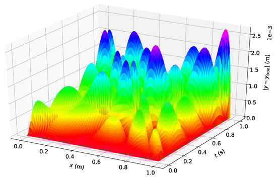 The second problem analyzed was the wave equation, shown in Equation (11).