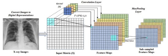 During this experiment convolution filter with pool size is used for feature extraction []. An illustration of input images flows from the convolutional layer to the Maxpooling layer is given in Figure 2.