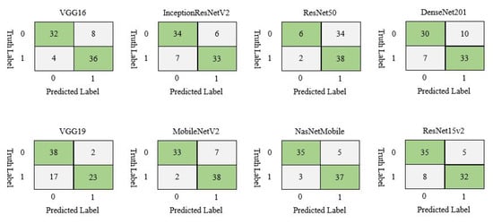 During this experiment overall accuracy, precision, recall, and f1-score were measured for eight different deep learning approaches considering CT scan and X-ray image using Equations (3)–(6).