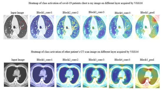 Heat map of class activation of CT scan image on different layer acquired by VGG16.