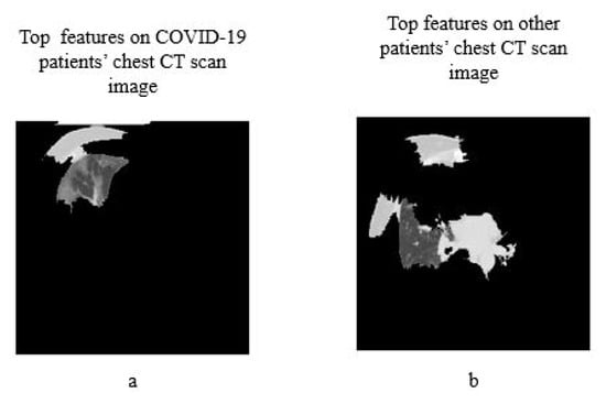 Top four features (a) on COVID-19 patients CT scan image (b) on other patients CT scan image.
