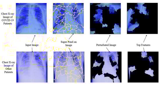 Recently, explanatory artificial intelligence (EAI) gained much popularity in medical image analysis as it helps to understand, visualize, and interpret any machine learning models used for disease prediction [,]. Ribeiro et al. (2016) proposed Local Interpretable Model-agnostic Explanations (LIME), a novel approach that explains any classifier’s performance in an interpretable manner []. LIME drew much attention by showing superiority in explaining how Google’s pre-trained network predicts by merely analyzing some random images []. Holzinger et al. (2017) consent that explainable-AI might be the next future in medical domains when health professionals rely on AI to understand the patients’ conditions []. Thus, an AI that explains the X-ray or CT scan images’ infectious regions might help the general practitioners— doctors, nurses, and health professionals, especially in rural areas— to detect between COVID-19 patients with others.