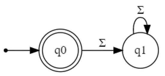 - Hopcroft, J.E.; Motwani, R.; Ullman, J.D. Introduction to automata theory, languages, and computation. ACM Sigact News 2001, 32, 60–65. [Google Scholar] [CrossRef]