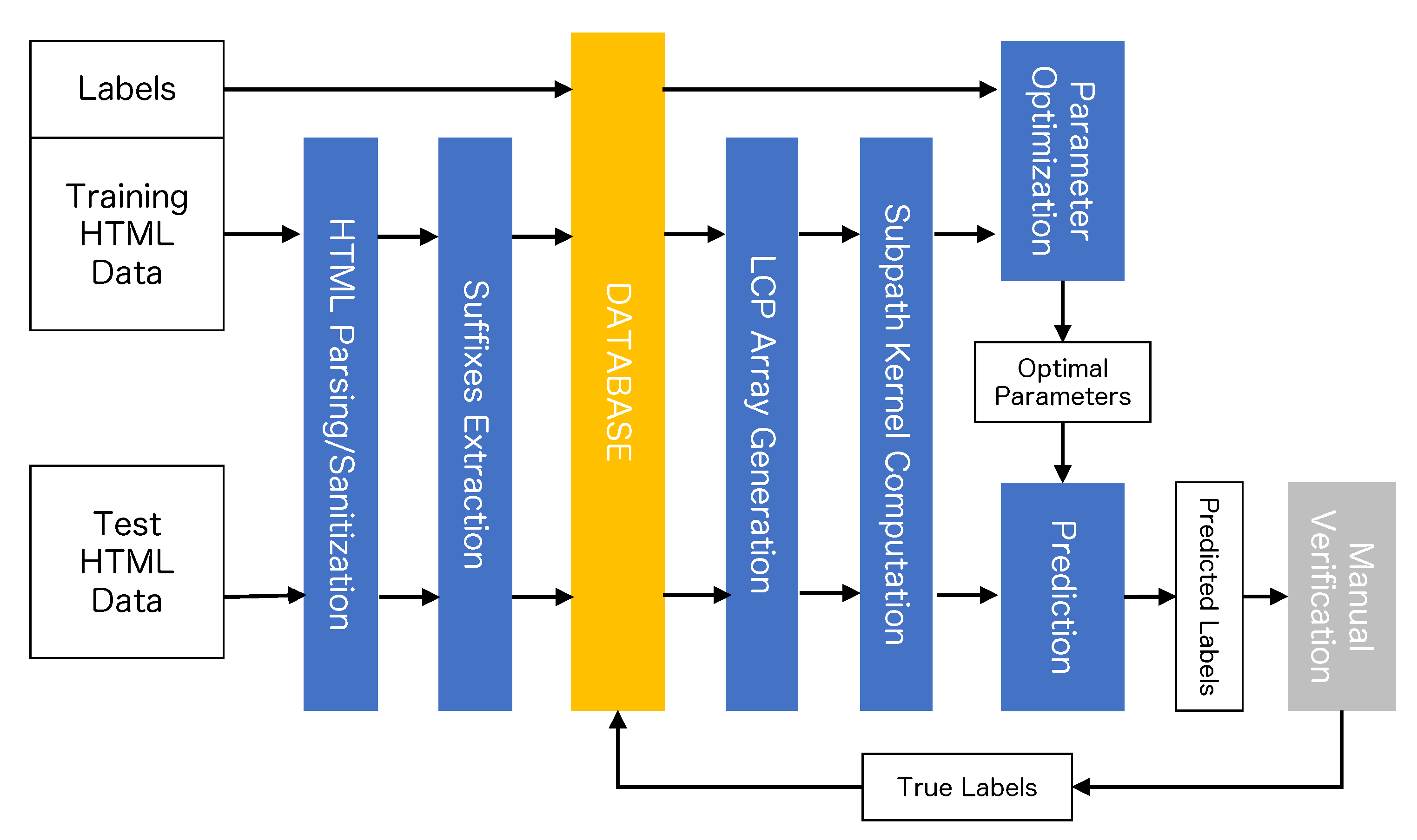 - The remarkably high performance observed in analysis of DOM trees for detecting fake e-commerce sites with the subpath kernel system.