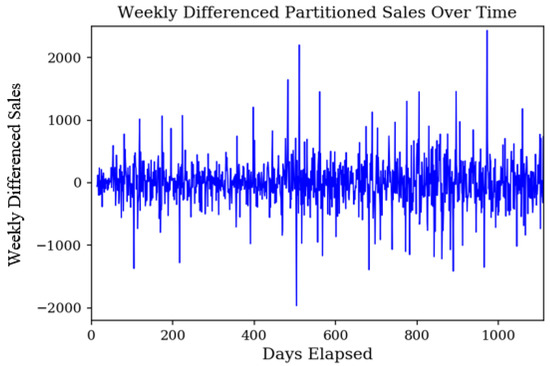 Similar to daily differencing, we may now define the dataset using the weekly difference Equation (2) instead of the actual sales. We take the difference such that,