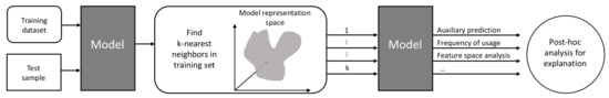 Figure 4 shows how to use k-nearest neighbors to explain inaccurate model predictions as proposed by Bilgin and Gunestas [], who explain their deep learning models through post hoc analysis of k-nearest neighbors. For an inaccurately predicted test sample, they extract the k-nearest neighbors in the training dataset and feed them into the trained model. By comparing the prediction based on the nearest neighbors in the training set and the inaccurate prediction of the test sample, they derive an interpretation of the model’s response and identify different cases. Bilgin and Gunestas [] apply their method to two standard machine learning benchmark datasets: IRIS and CIFAR10. They originally tested their method on supervised classification tasks, and we adapted and applied it to our supervised regression task.