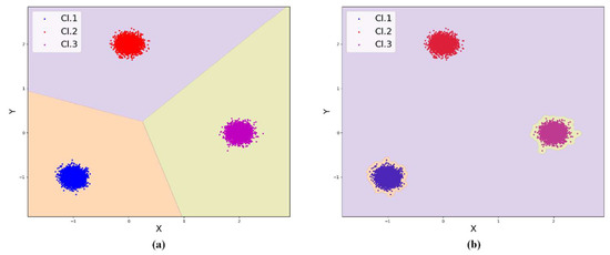 Figure 5b, examples close to the scope of classes Cl.1 and Cl.3 will be classified as belonging to class Cl.2. On the classifier in case