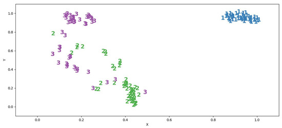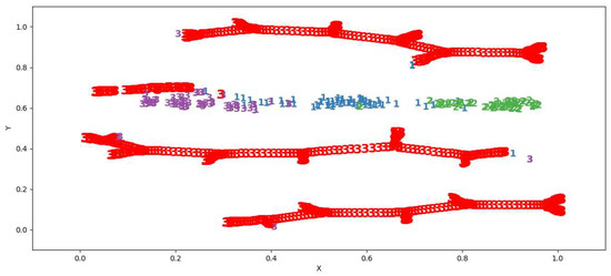 It is recommended to choose the cell size for the data set under study so that the number of training set points in each cell is balanced and tends to 1. If the cell size is too small, then in the case of high data dimension, the calculations will require significantly more time. In addition, a too small value of will lead to the fact that neighboring points will be separated in the scan set by several empty cells that do not belong to , which can lead to the loss of significance of the EDCA numerical estimates.
