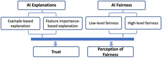 Kasinidou et al. [46] investigated the perception of fairness in algorithmic decision-making and found that people’s perception of a system’s decision as ‘not fair’ affects the participants’ trust in the system. Shin’s investigations [27,37] showed that perception of fairness had a positive effect on trust in an algorithmic decision-making system such as recommendations. Zhou et al. [3] obtained similar conclusions that introduced fairness is positively related to user trust in AI-informed decision-making.