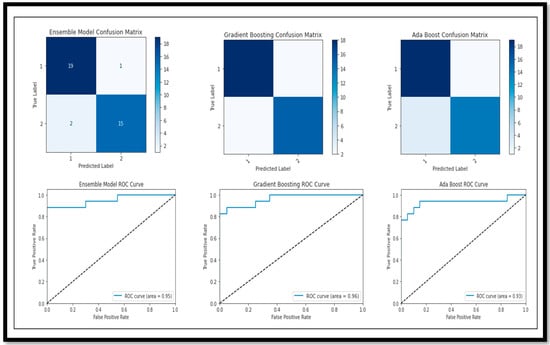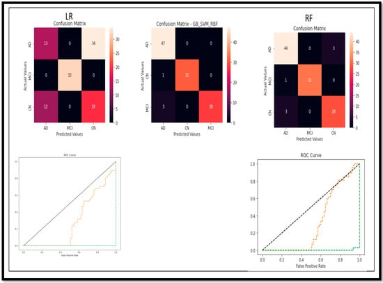 Following the evaluation of performance metrics and model performance for all models, we also examined the Confusion Matrix and ROC curve for each model in relation to the results obtained for (BC) (AD vs. MCI vs. CN) (Figure 16).