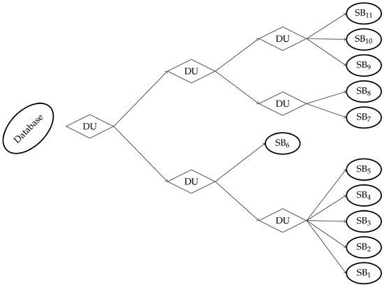 Recursive decomposition of a database into local subdatabases (SB). Term “DU” stands for “Decomposition Unit“, i.e., representing any clustering algorithm.