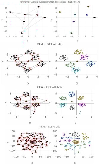 - Demartines, P.; Hérault, J. CCA: “Curvilinear component analysis”. In Proceedings of the 15° Colloque sur le Traitement du Signal et des Images, Antibes, France, 18–21 September 1995. [Google Scholar]