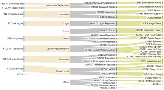- Sharoff, S. Functional text dimensions for the annotation of web corpora. Corpora 2018, 13, 65–95. [Google Scholar] [CrossRef]