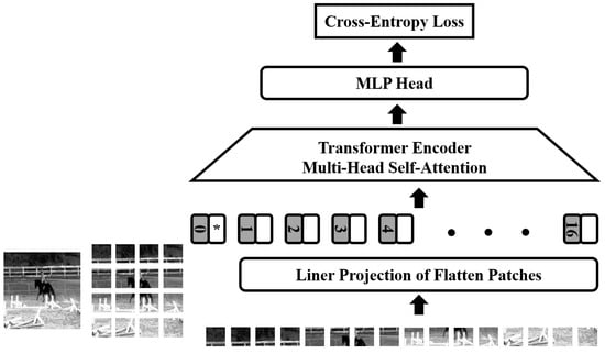 - Dosovitskiy, A.; Beyer, L.; Kolesnikov, A.; Weissenborn, D.; Zhai, X.; Unterthiner, T.; Dehghani, M.; Minderer, M.; Heigold, G.; Gelly, S.; et al. An image is worth 16x16 words: Transformers for image recognition at scale. arXiv 2020, arXiv:2010.11929. [Google Scholar]