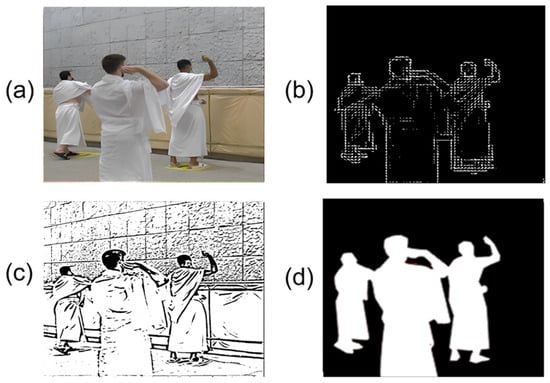 Examples of handcrafted features used in traditional vision-based methods for human pose estimation are (a) the original image, (b) the HOG (Histogram of Oriented Gradients) feature, (c) the edges feature, and (d) the silhouettes feature.