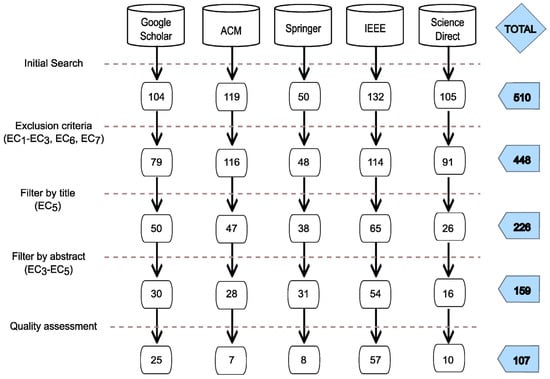 The initial search results, the selection criteria, and the qualitative evaluation of the articles chosen for inclusion are discussed here. Figure 4 summarizes the number of articles that passed the filtering process and shows how many were eliminated in each phase. Answering and analyzing our review questions will be in the discussion section, Section 8.