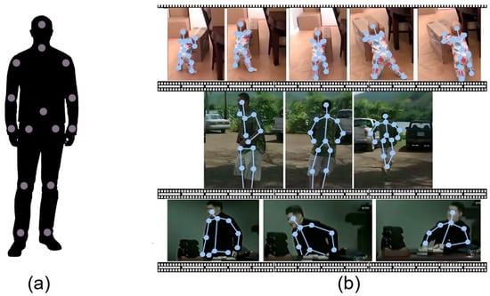 The JHMDB dataset, where (a) is the key points annotated of the dataset and (b) are some data examples.