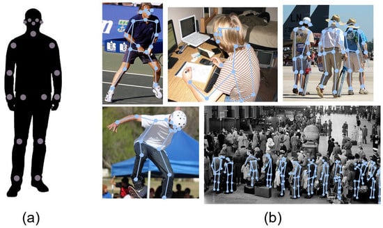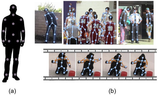 The PoseTrack dataset, where (a) is the key points annotated of the dataset and (b) are some data examples.