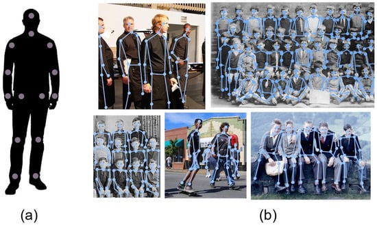 With the emergence of neural networks, surveys [,] also included deep learning-based techniques with vision-based methods. Gong et al. [] comprehensively summarized HPE from monocular images, including traditional and early deep-learning works. Their survey covered feature extraction, the type of human body model used, and pose estimation methods. Additionally, they provided a summary of existing datasets and performance metrics used. However, only a few early deep-learning methods were covered. In contrast, a more recent survey [] covered more indepth works that have significant contributions in estimating two or more persons’ poses in an image, such as OpenPose [], DeepCut [], and Mask R-CNN [], while highlighting their challenges and providing a brief description of traditional methodologies.