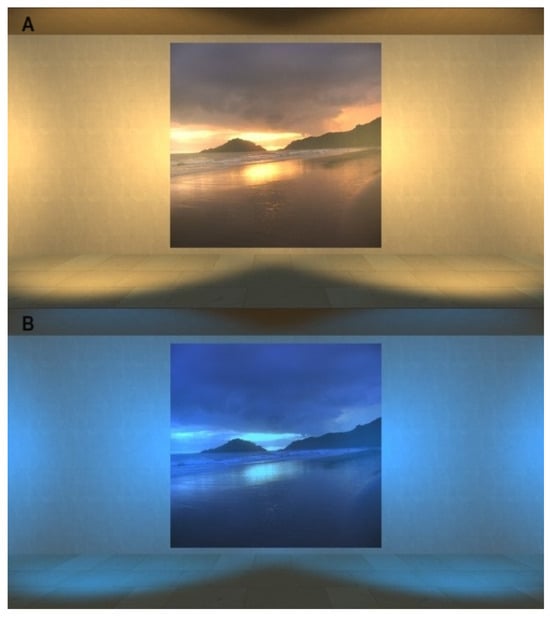 (A) VR Environment of one image under warm light condition and (B) under cold light condition.